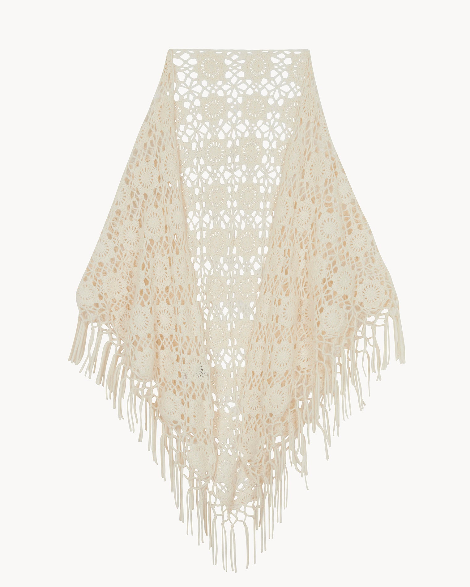 Poncho Gypsy Flowers white Fringed Cashmere Poncho, 4-threads