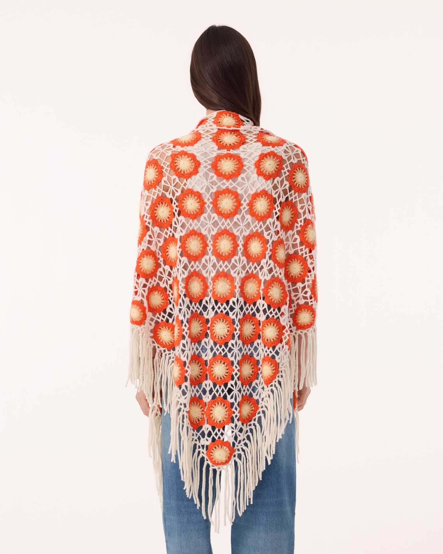 Poncho Gypsy Flowers sunset Fringed Cashmere Poncho, 4 threads