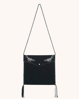 Bag Western Cashmere pipping hand-embroidered flap bag with pompoms