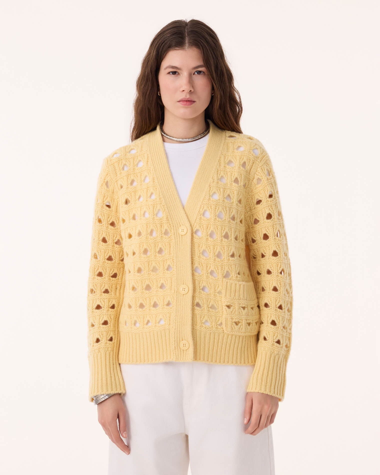 • Cashmere cardigan, 7 threads yellow sun