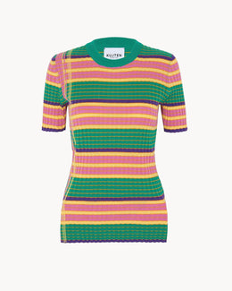 Pull Bunga Pull col rond rayé soie & cachemire
