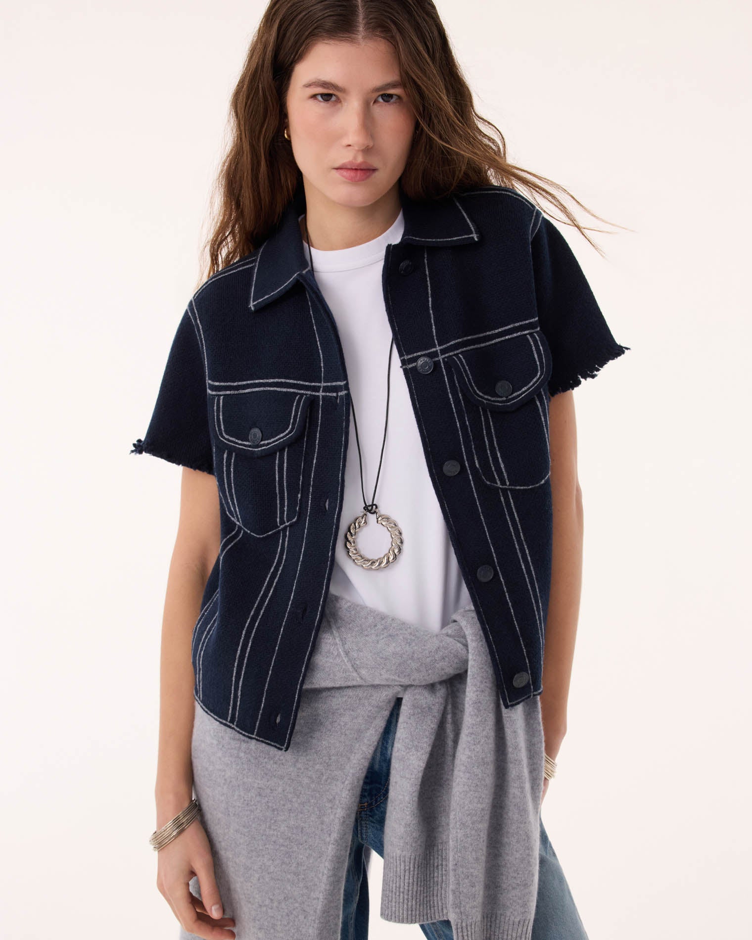 Veste Jessinda bleu marine foncé Veste cachemire courte jacquard denim, 4 fils